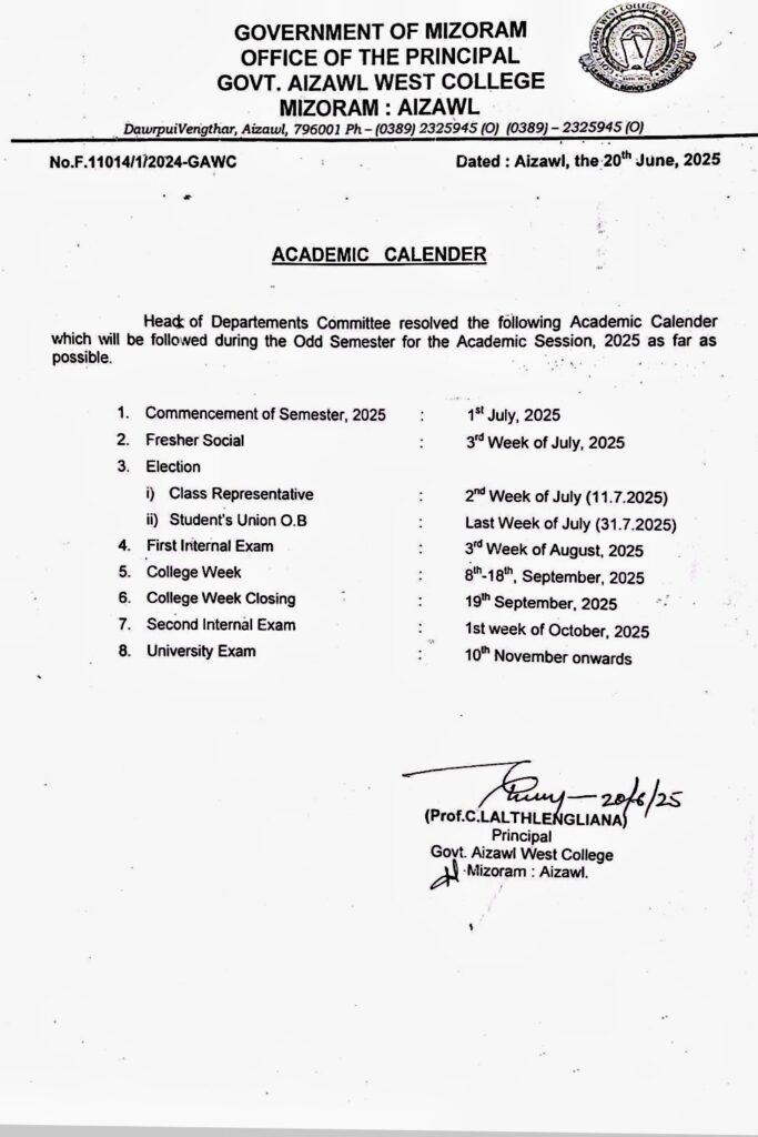 Second List of Selected Candidates for Admission to Govt. Aizawl West College, 2025 Odd Semester